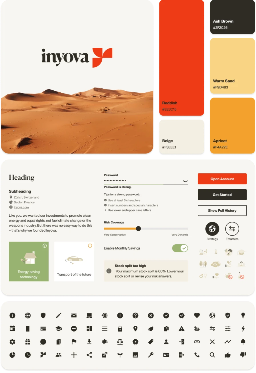 How we created a cross-platform design system that streamlined workflows, improved consistency, and scaled across teams at Inyova — a fast-growing sustainable investment startup.